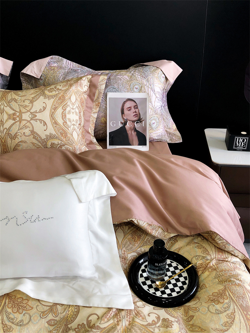 数码印花,花型亮丽,纹案寓意吉祥美好,绵延不断,具有细腻、繁复、华美的艺术特征,成为世界性图案